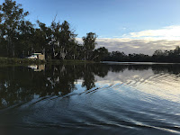 From an idealic overnight camp spot to dry land. From a night where everything went well, setup and fed before dark, wake up early and loaded the boat, heading off just after sunrise to probably one of the hardest days rowing I've had, Lake Mulwala is full of dead trees and you need to concentrate and follow the channel markers.